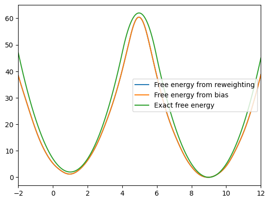 The free energy profile can be obtained either from reweighting or directly from the quasi-static bias:
